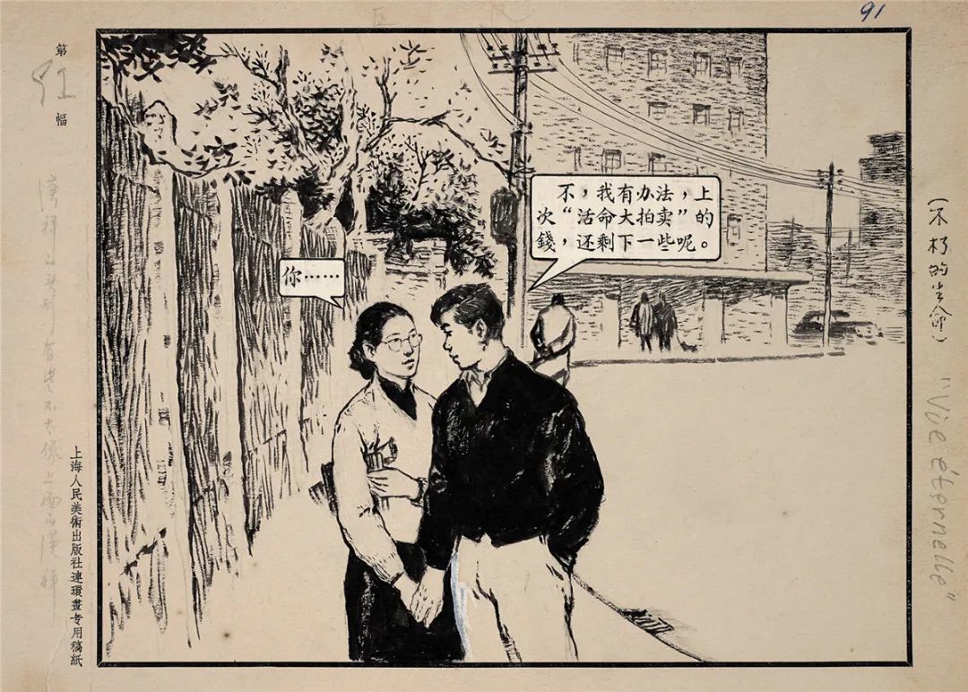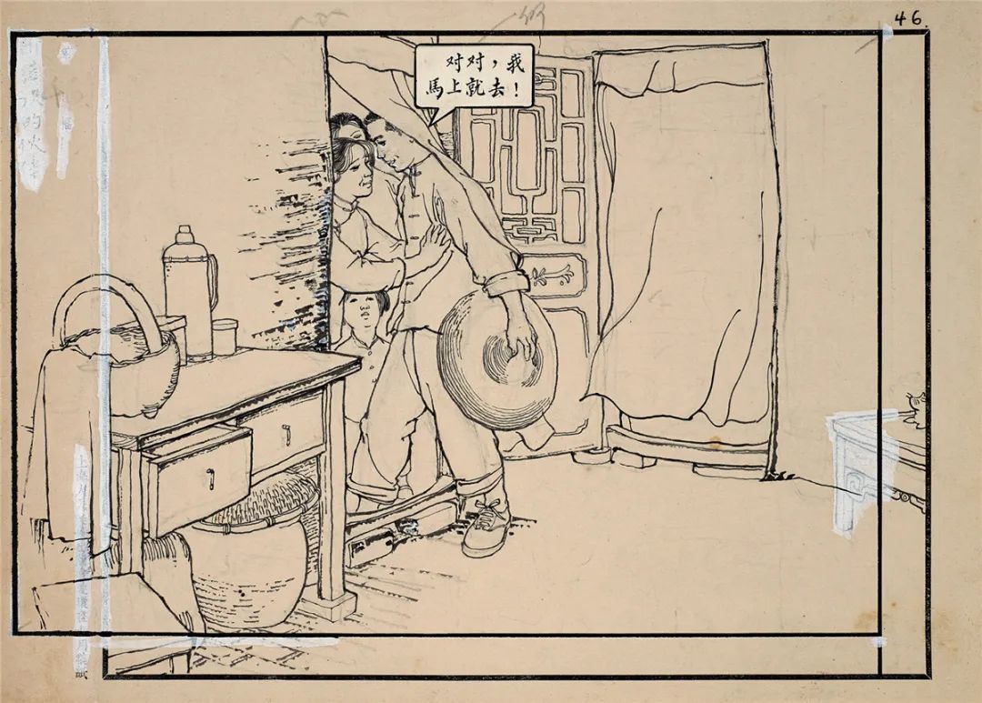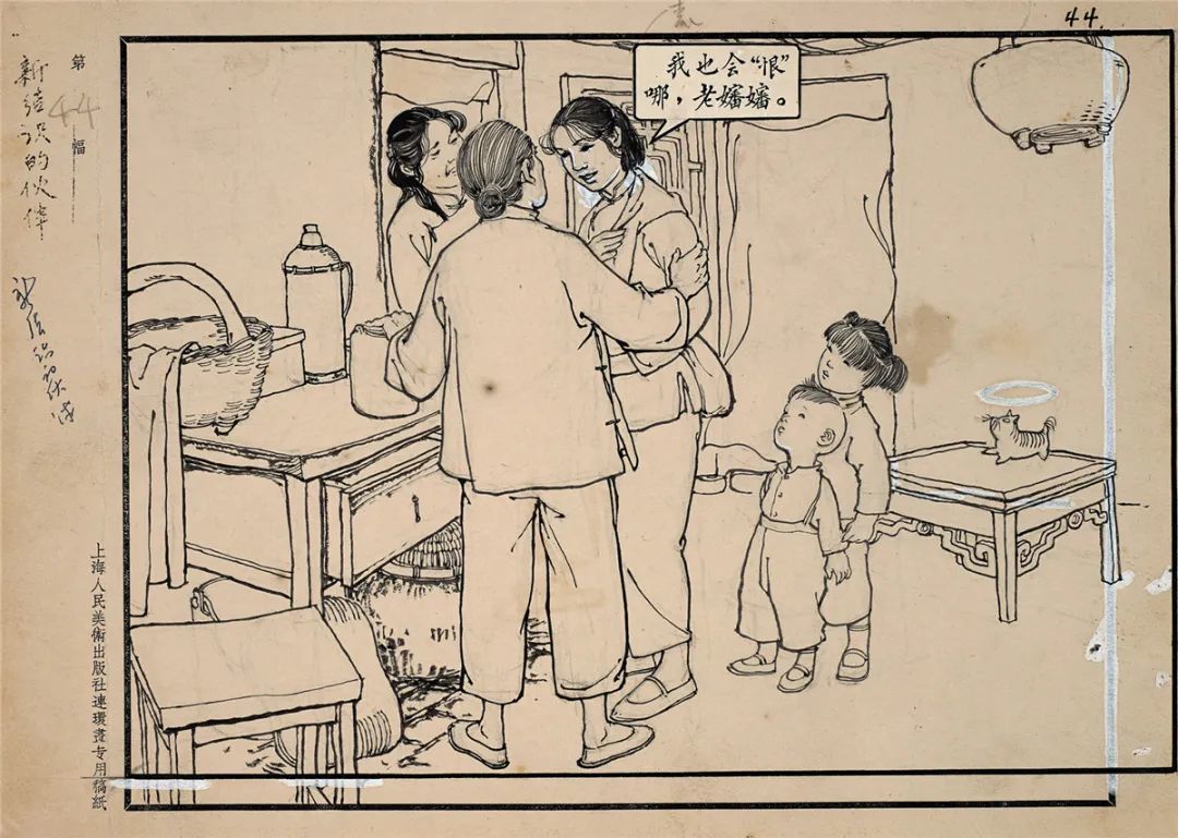 “我记得是一九五八年底一九五九年初去到湖南益阳的, 春节前回上海,完成了第一册的草图及部分正稿,回到社里, 老顾、亚君两位看了画稿只是摇头皱眉,半晌吐出两个字:‘重画。’对这结果我并不意外,因为我对自己的东西本不存有太多的自信,不过也存在巴望能顺利通过的幻想,如今落到这样结果,为何会如此,要由自己来找出原因,从失败中找出原因是需要有点水平的,因为这不是鸡毛蒜皮的技术问题,是创作着眼点的根本问题。