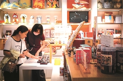 “北京礼物”戏曲主题文创店可谓来吉祥大戏院必逛的地方。“这是一个戏曲主题的文创店,每次来吉祥大戏院,我肯定要腾出一些时间来逛逛这里。”对于戏迷李女士来说,吉祥大戏院的戏曲文创店是她的快乐源泉,“各地的文创店不少,但吉祥大戏院的文创店还真有点特别,我最喜欢这里的吉祥蕾恩珠宝,会员付费后每年可以换着样地戴。”吉祥大戏院联名“璀璨梨园系列”将戏曲的盔头造型制成耳环、项链等首饰,既保留了戏曲服饰的华美,又融入现代极简设计,成为年轻女性日常穿搭的“点睛配饰”。“所谓‘戏可入画、画能入戏’,在吉祥大戏院,这些竟然可以如此具象化,甚至还能带回家,特别满足。”李女士说。而冰箱贴、钥匙扣、金属书签、湘妃竹扇子、鼠标垫等日常小物件都能在这里找到。
