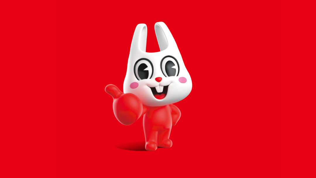 与之相比,是新形象的兔子设计,兔子的耳朵较短,眼睛更加圆润,搭配夸张大笑的嘴巴,塑造出圆润饱满、憨态可掬的可爱造型。