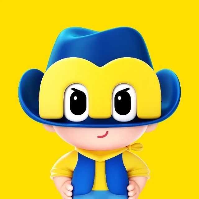零食很忙LOGO以“零小忙”这一IP形象为核心,保留了标志性的牛仔帽和墨镜,黄蓝撞色在街头/商场环境中极具视觉冲击力。