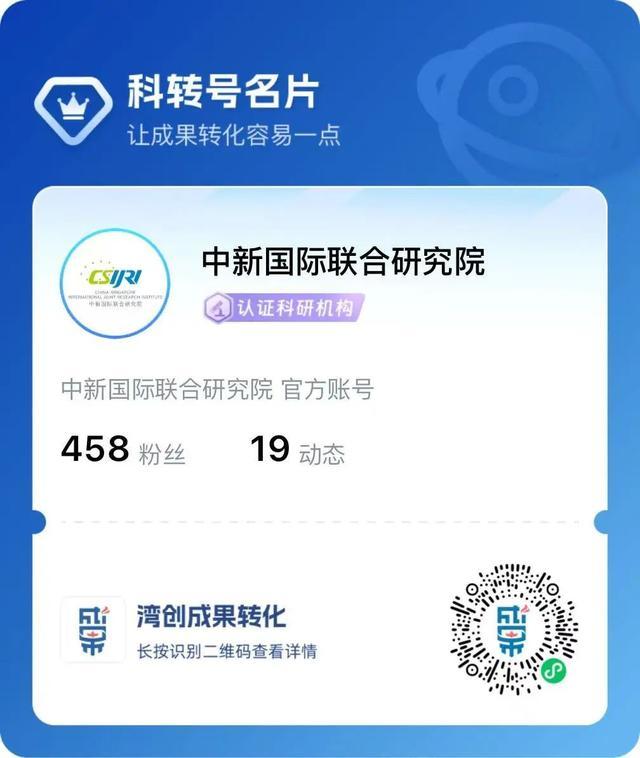 本期,我们特别推荐来自 中新国际联合研究院 的五项科技成果。欢迎进入“湾创成果转化”小程序关注了解,共同探索合作机会!