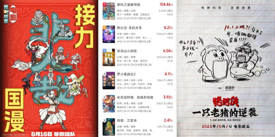 在整体票房大盘表现平平的今年暑期档,包括《浪浪山小妖怪》在内,已有连续3部动画电影票房破2亿。纵观全年,则已有6部国产动画电影票房破亿,并预计有4部破5亿,均创历年之最。而接下来,今年还有《非人哉:限时玩家》(8月16日)、《猪猪侠·一只老猪的逆袭》(10月1日)等作品上映,或将进一步扩大破亿作品规模。