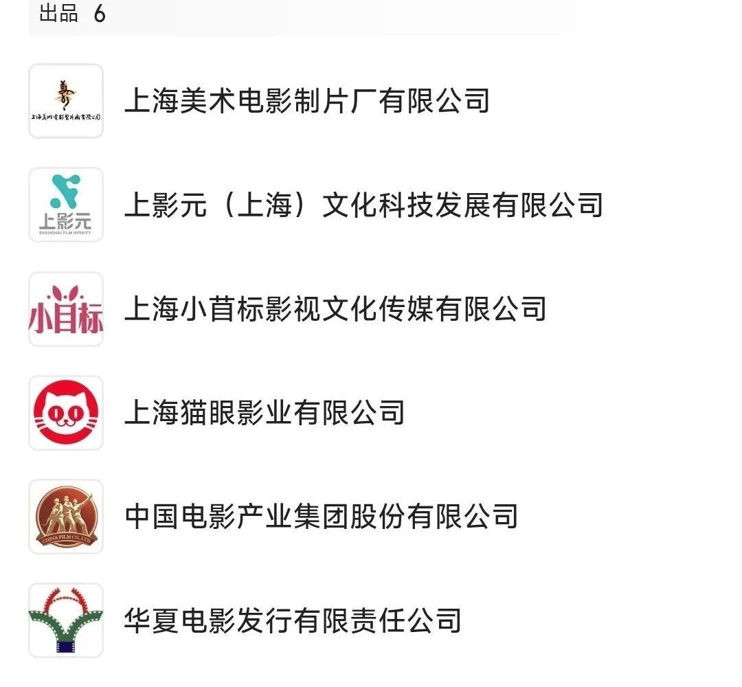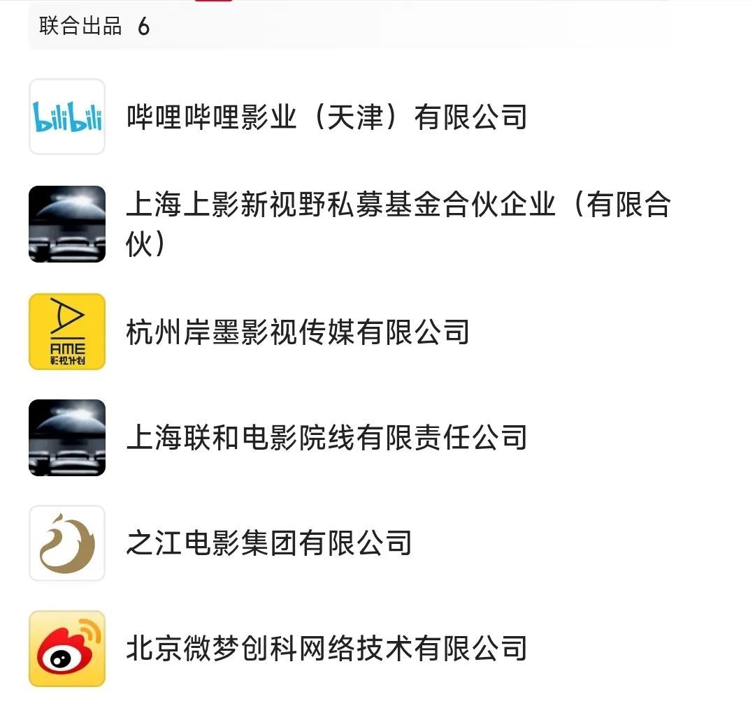 此外,该电影还有6家联合出品方,包括:哔哩哔哩影业、上影新视野私募基金、岸墨影视、联合院线、之江电影集团和微梦创科。