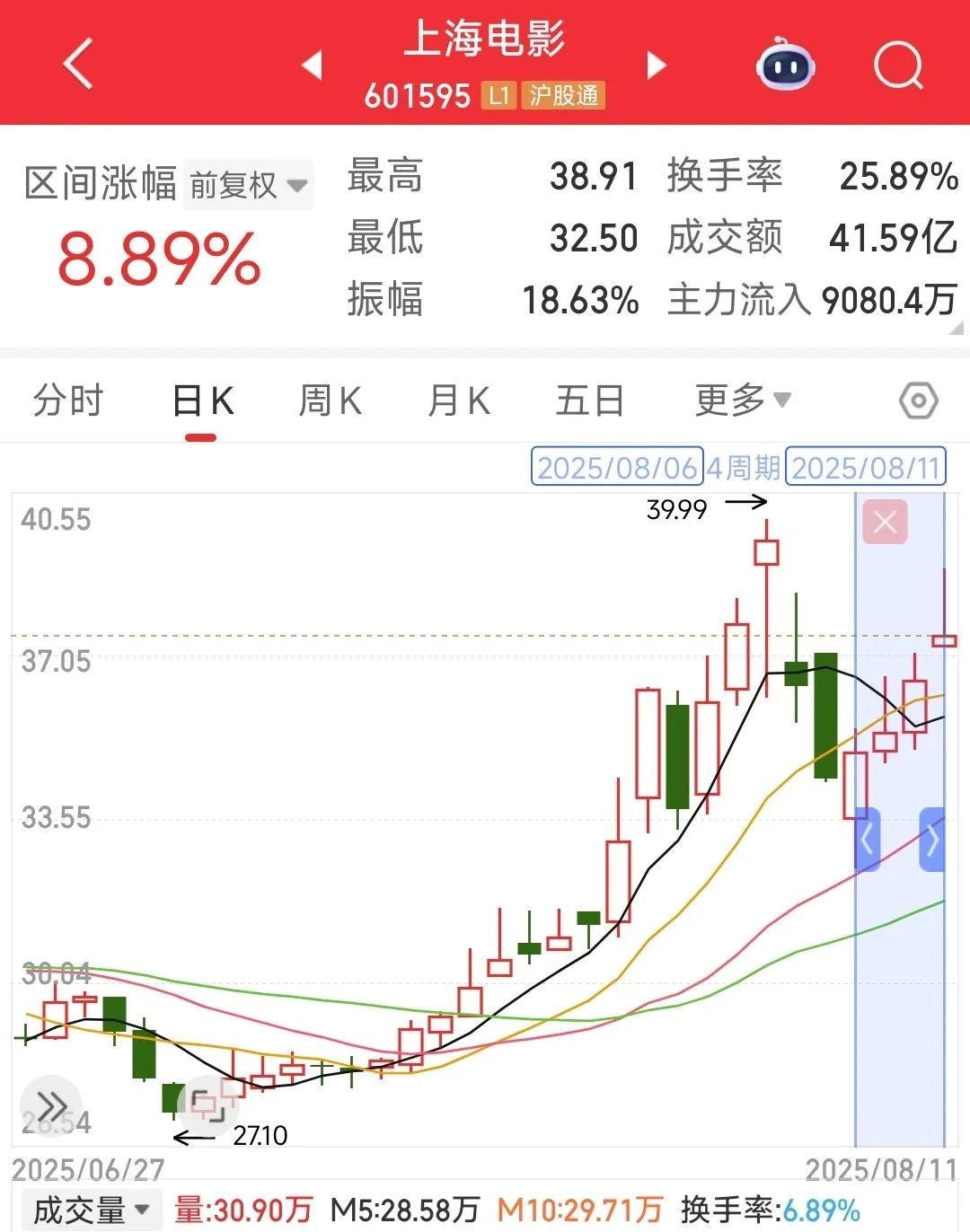 此外,由于电影票房走势不错,也带动了上海电影近几日股价的走高,从8月6日起已连续保持上涨趋势,总涨幅约9%。
