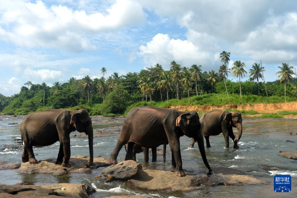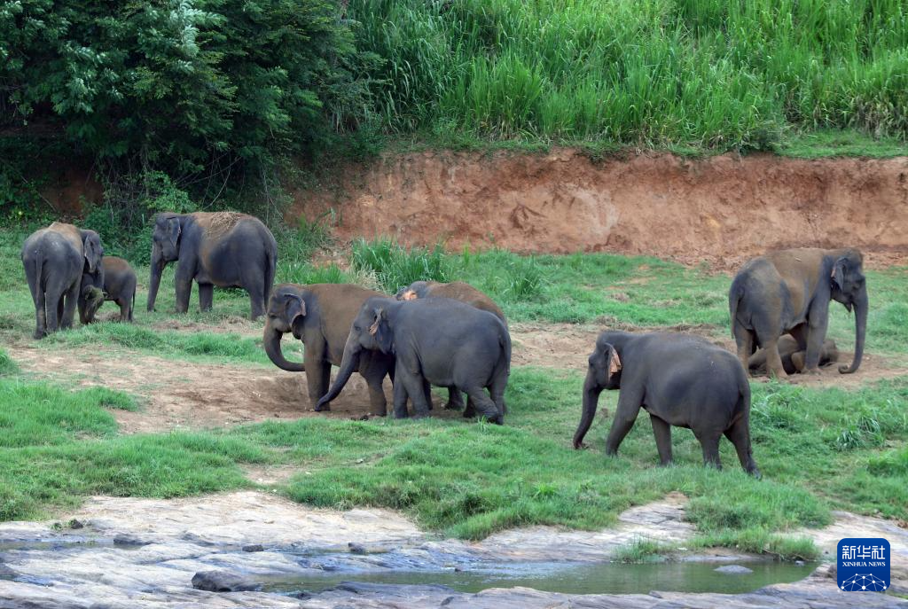 这是8月9日在斯里兰卡平纳维拉大象孤儿院拍摄的象群。
