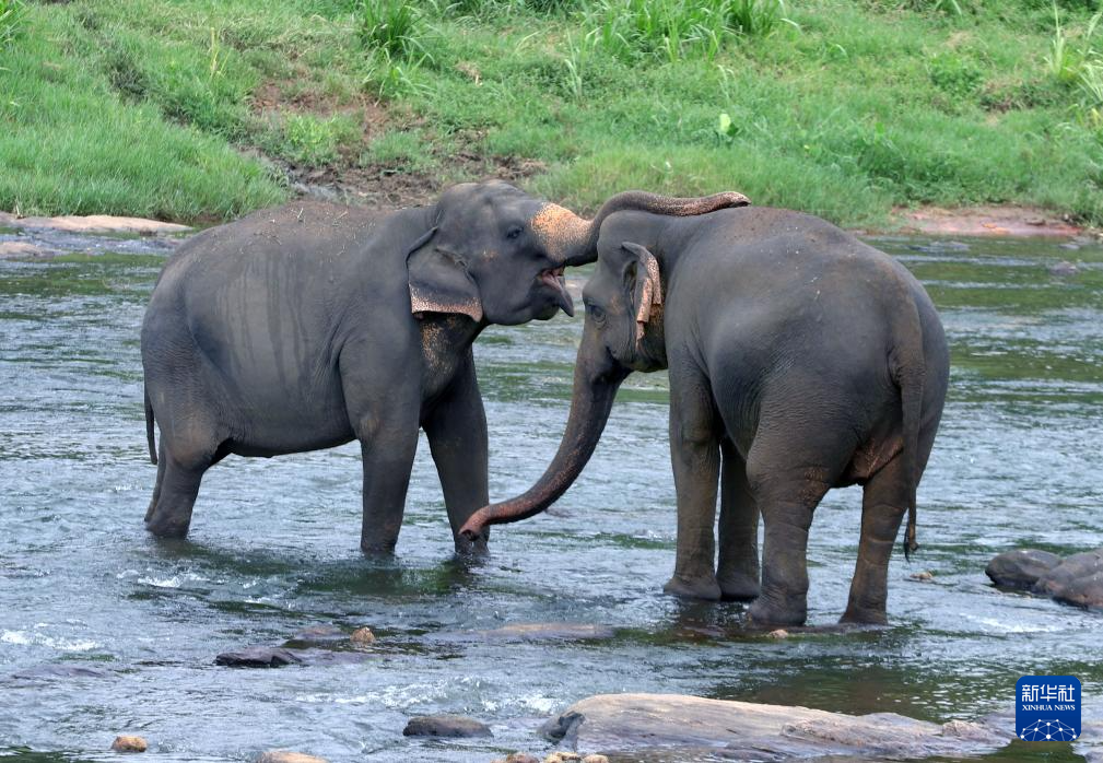 8月10日,游客在斯里兰卡平纳维拉大象孤儿院观看象群。
