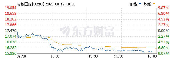 8月12日盘后,金蝶大跌8.41%,报收16港元/股。