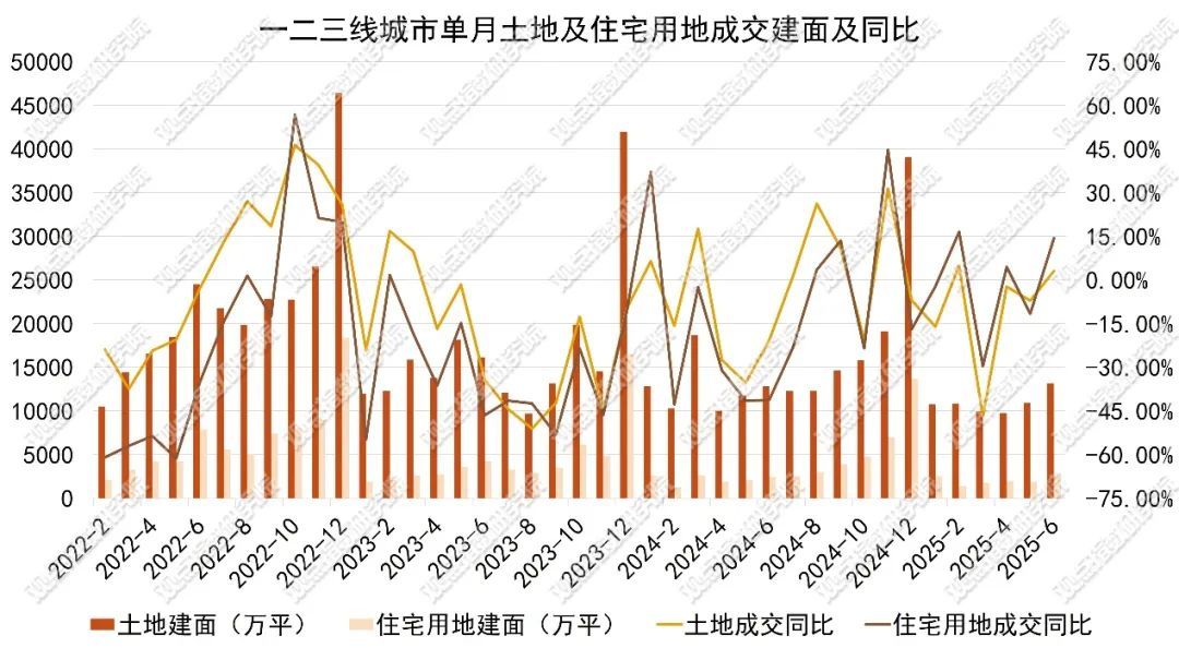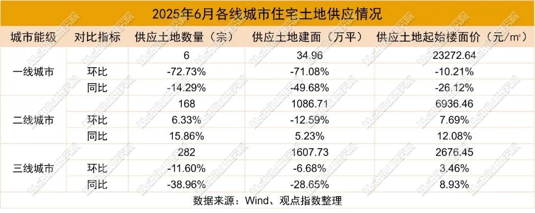 2025年6月18日-7月16日,6个重点城市共有90宗地块挂牌,起始价167.26亿元,面积262.13万平方米,出让面积环比激增99.84%。同期,6个重点城市成交涉宅地115宗,总成交价611.76亿元,成交面积287.29万平方米,环比均大幅增长。