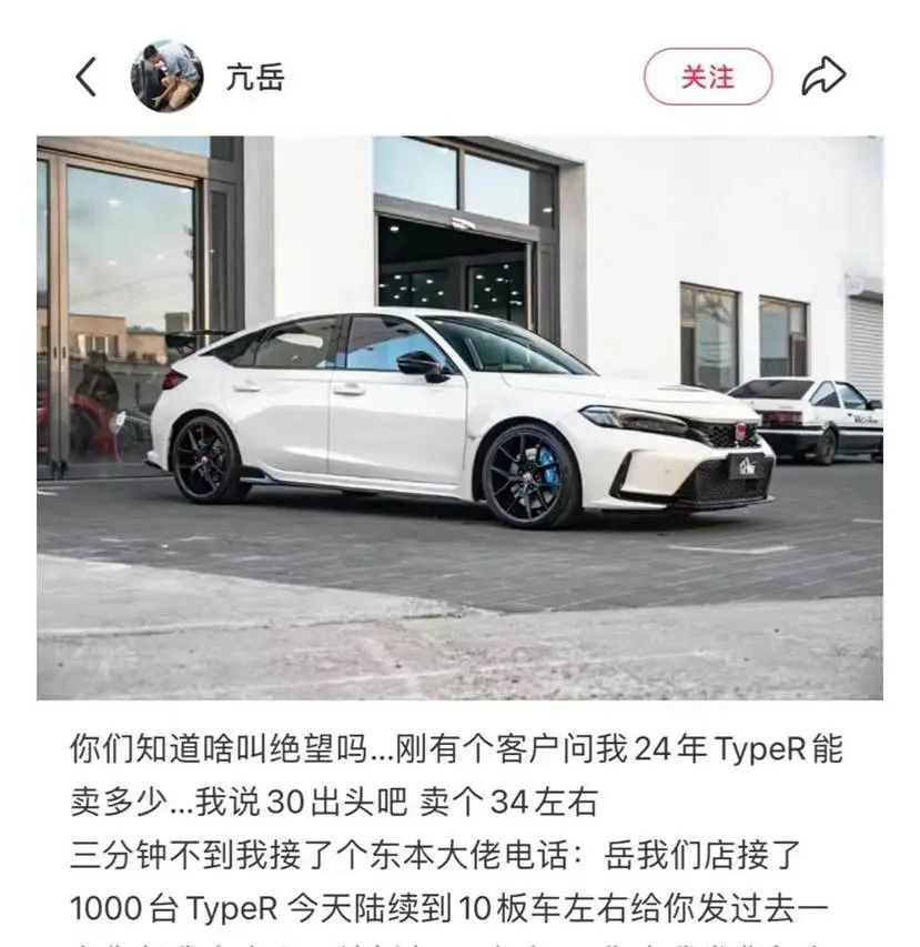 而就在2025年过完春节,TYPE-R在国内市场的天彻底塌了,先是汽车博主亢岳发文称TYPE-R新车裸车34w,随后得知目前库存还有1000台。那么为什么卖来卖去又多了,其实东本在2025年初又下订440辆,所以国内TYPE-R的总量来到了惊人的3000辆。