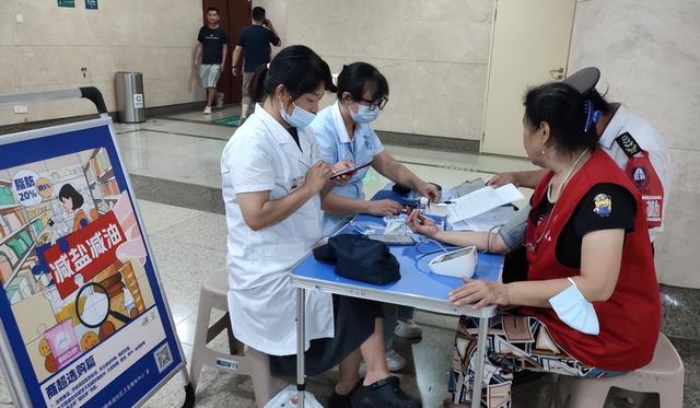 “师傅,您的血压有点偏高,平时要注意每天少点盐,做菜时少放一勺油,对控制血压有好处。”8月13日上午在湘雅医院负一楼,湘雅路街道社区卫生服务中心医护人员一边为保安师傅们测量血压、血糖,一边耐心叮嘱着健康细节。