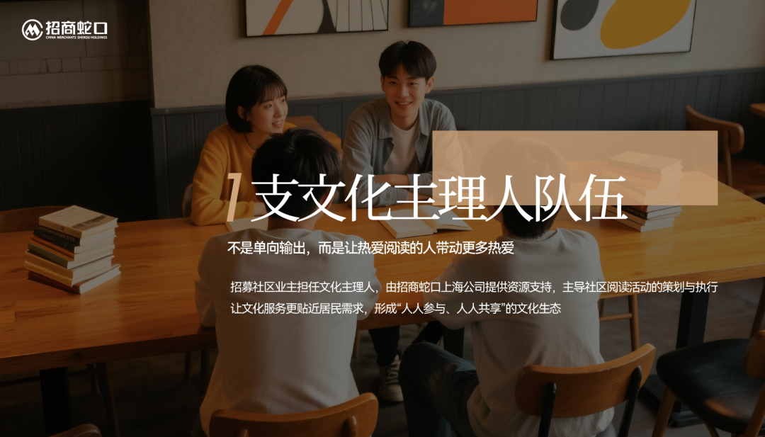 招募社区业主担任文化主理人,由招商蛇口上海公司提供资源支持,主导社区阅读活动的策划与执行,让文化服务更贴近居民需求,形成“人人参与、人人共享”的文化生态。
