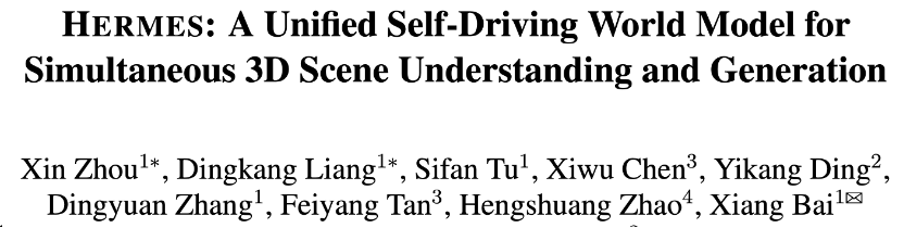 论文标题:HERMES: A Unified Self-Driving World Model for Simultaneous 3D Scene Understanding and Generation
