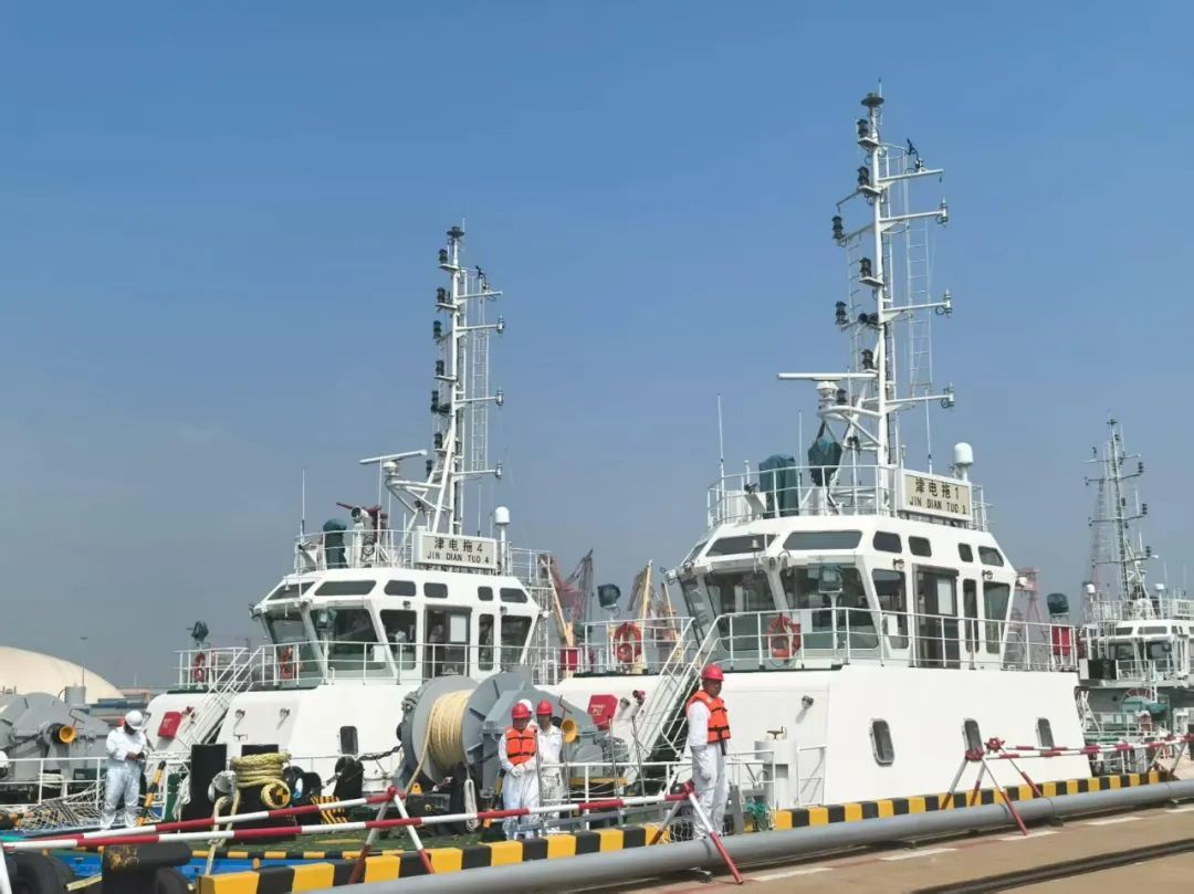 8月13日,目前我国北方规模最大的纯电动拖轮船队在中船天津码头启航。