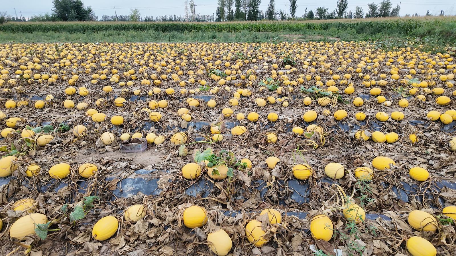 在安置点附近的制种地里,殷明山今年种了4亩甜瓜、2亩多葫芦、6亩胡萝卜,黄澄澄的葫芦和圆滚滚的甜瓜铺满了整片农田,即将进入成熟期。