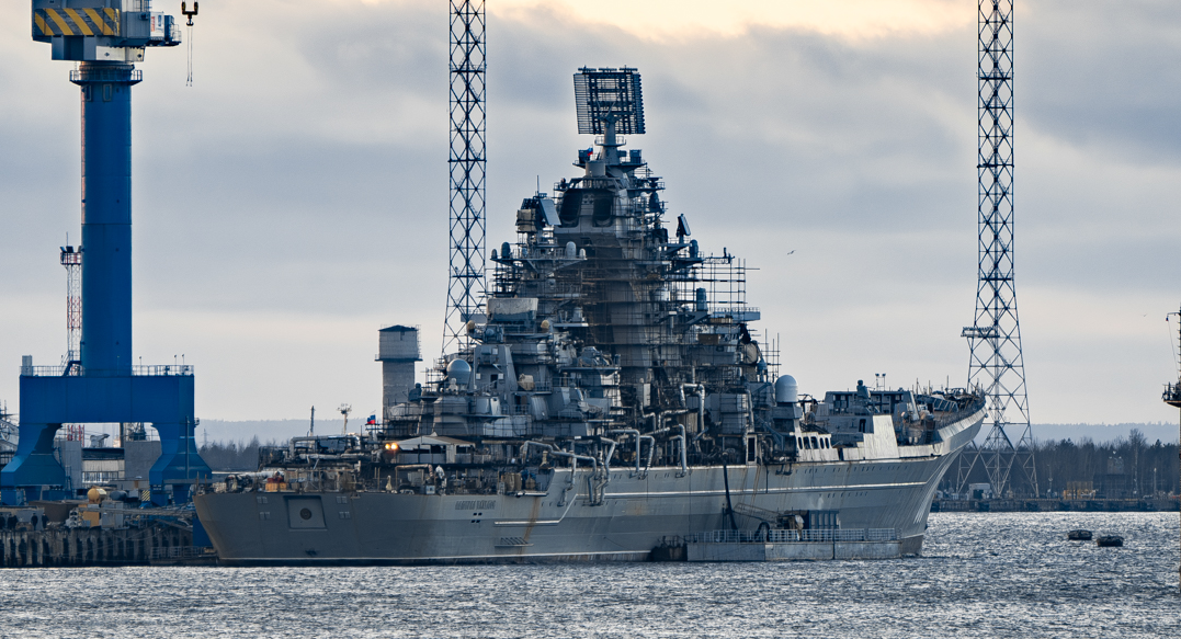 “纳希莫夫海军上将”号是“基洛夫”级核动力巡洋舰,排水量超过2.5万吨,曾在俄北方舰队服役。该舰用来摧毁大型水面目标,兼具综合防空和反潜功能。该舰建造于20世纪80年代末期。2013年,位于北德文斯克的北方机械制造厂开始对“纳希莫夫海军上将”号巡洋舰进行升级改造。