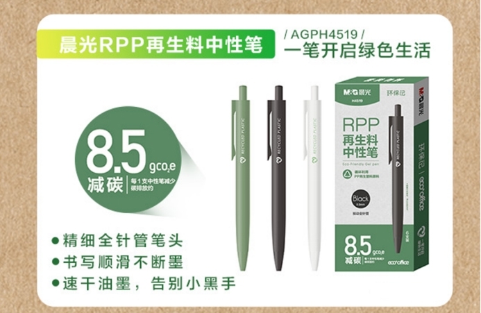 一笔开启,绿色生活。作为有温度、负责任的文具行业领军品牌,近年来,晨光持续关注可持续议题,积极寻求再生、可降解及更安全健康的原材料,创新推出可持续产品。从与美团外卖青山计划合作推出的首款碳中和文具系列,到携手红树林基金会(MCF)推出的 “濒危动物・湿地” 系列,到倡导海洋保护的 “深蓝星球” 系列,再到近期推出的环保记「LOHAS」系列,其书写工具采用再生材料和 PLA 可降解材料制作,对环境更加友好。