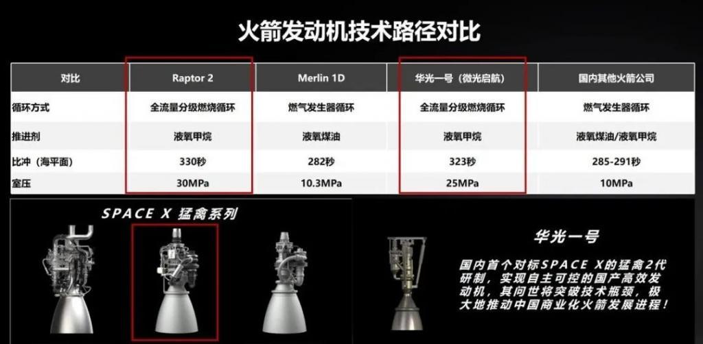 微光启航自研发动机与其他火箭发动机相比(图源 / 企业)