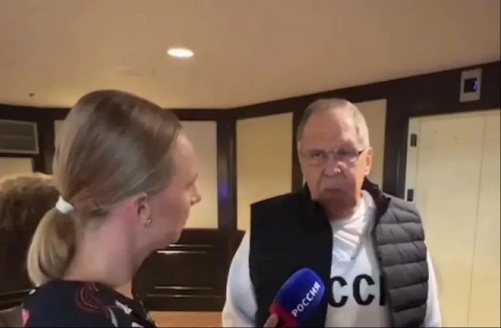 报道称,担任俄罗斯最高外交官已有20年之久的拉夫罗夫身穿一件白色运动卫衣,外罩一件黑色羽绒背心,白色卫衣胸前印有“CCCP”的字样(这是“苏联”一词的俄语缩写)。