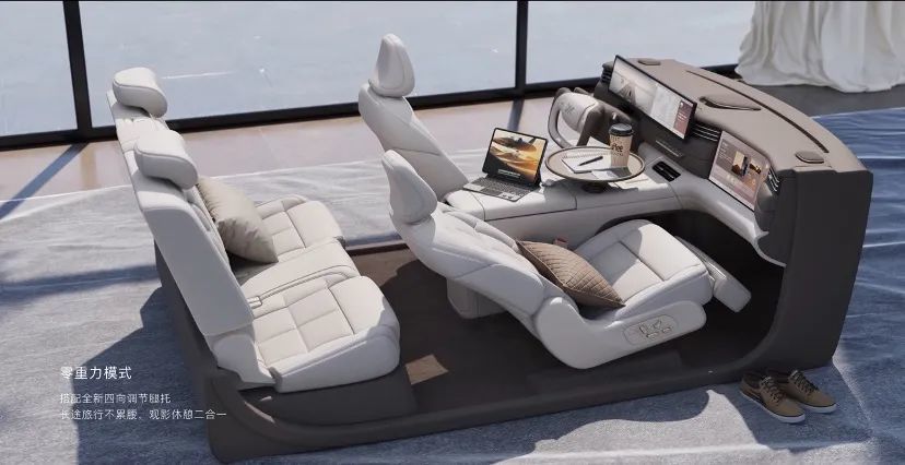 另外在具体的座椅设计上,该车搭载“超级右排”头等舱,副驾支持零重⼒和贵妃椅模式,带来贴合人体的躺姿和支撑包裹感。