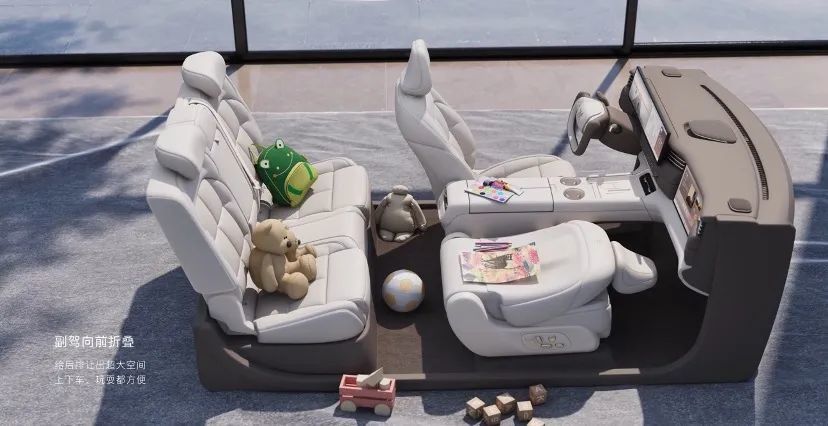 副驾不坐人时,还能副驾向前折叠,满足后排的空间需求。前排主驾具备“⻉果”舒压系统,具备通风、加热功能,可实现软硬三档可调,还能带来波浪式舒压的8点SPA级按摩,长途累了,找个服务区就能尽情释放周身疲惫,感受科技的舒适和美好。