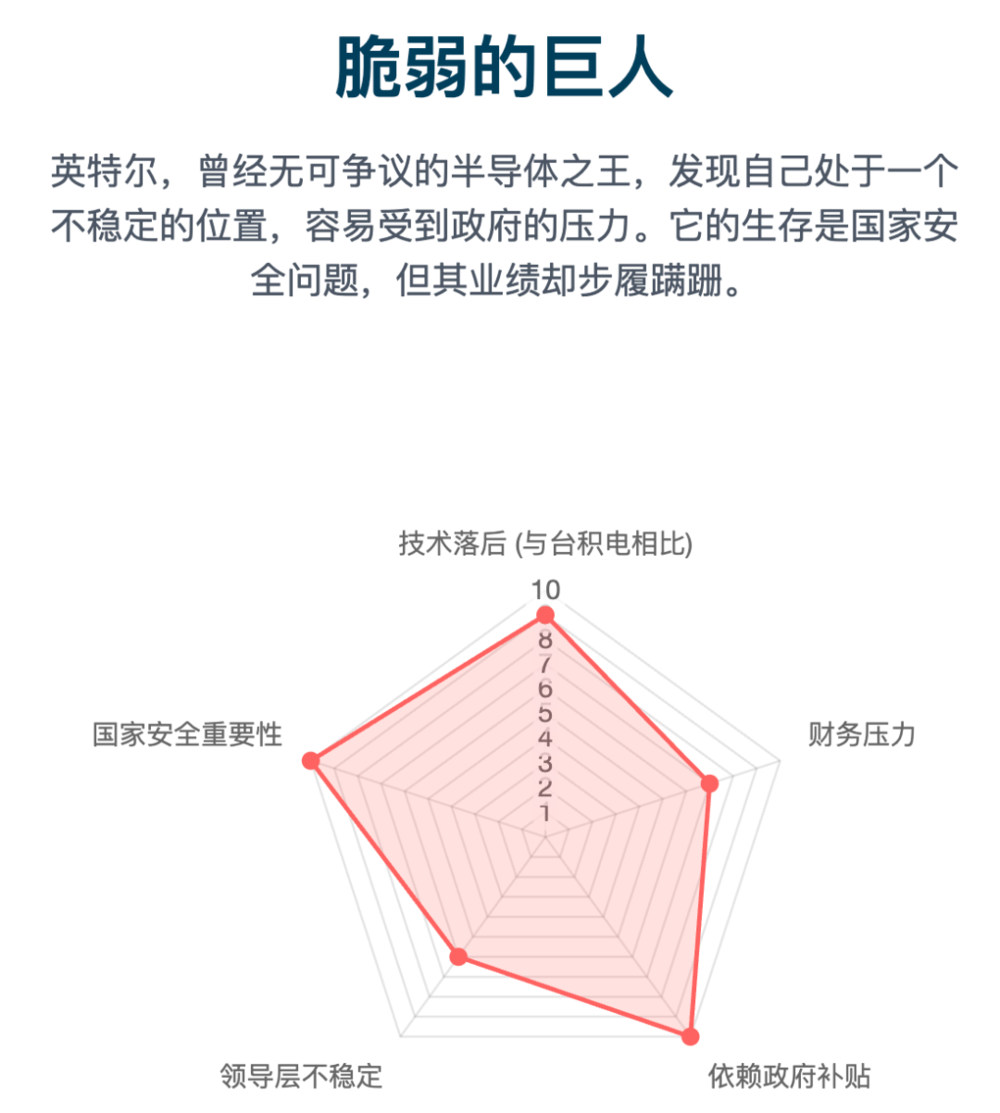 这引发了一个严重的问题:在一个需要承担巨大风险、容忍失败、并进行长达十年以上研发投入的行业里,一个受到政府直接影响的英特尔,是否还能保持其创新活力和全球竞争力?