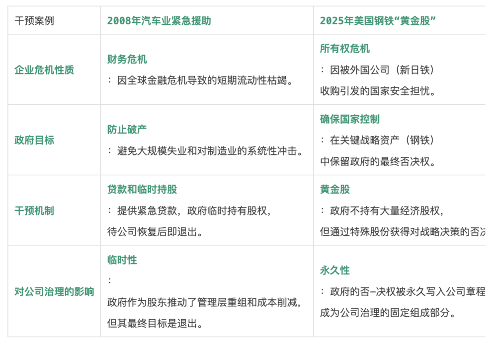 3. “黄金股”模式:基于美国钢铁的先例,这似乎是可能性最大的一种模式 30。政府可能只持有象征性的一股,但这一股被公司章程赋予了对公司重大战略决策(如并购、重大资本支出、CEO任免、关闭关键设施等)的绝对否决权。