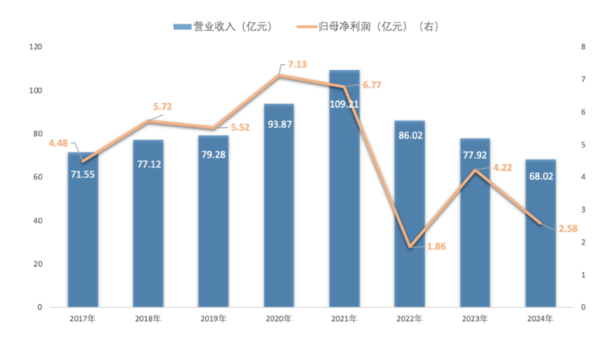 2022年至2024年,太平鸟营业收入分别下滑21.24%、9.41%和12.34%,净利润从2021年的9.2亿元锐减至2024年的3.6亿元,跌幅高达60.9%。而在2025年上半年,太平鸟营收继续下滑约8%。