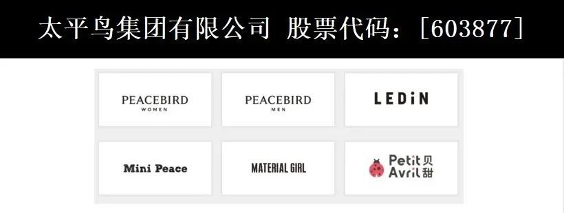 创立于1996年的太平鸟集团,最开始走的是休闲男装路线,后于2001年推出了首个女装品牌PEACEBIRD WOMEN。此后太平鸟又陆续推出多个子品牌,包括PEACEBIRD MEN、Mini Peace以及乐町LED’IN等,并于2013年引进MATERIAL GIRL少女品牌。
