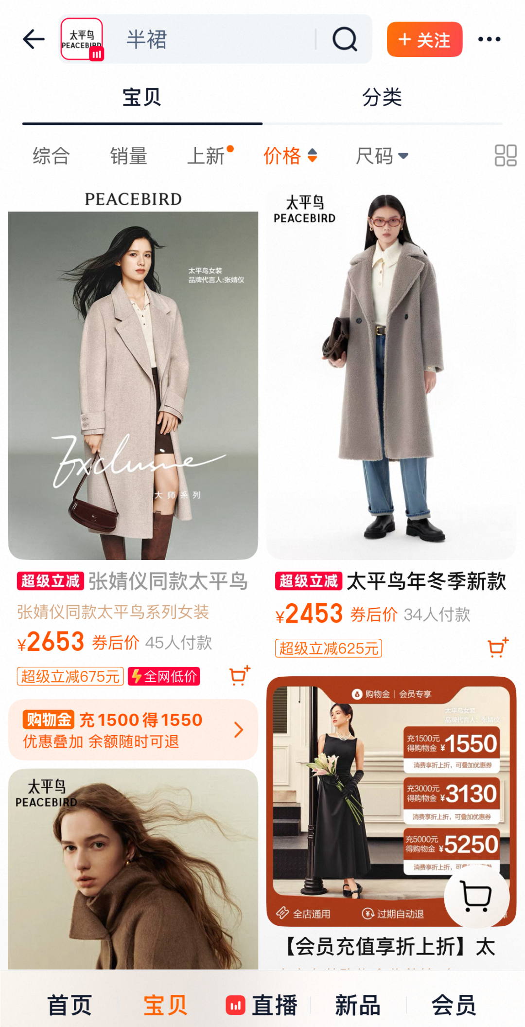 你几乎会在各大商场见到太平鸟的门店。进去逛过的都知道,太平鸟的产品定价在200元~3000元不等,这一价格区间在同类品牌中处于较高水平,其女装售价在500元、1000元以上的比例分别为36.4%和12.9%,男装为47.8%和18.3%。