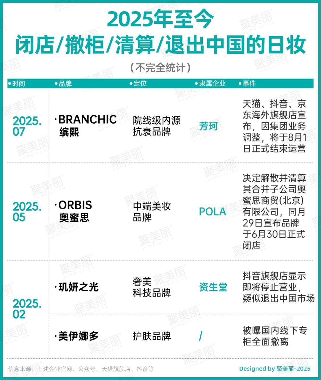 受中国市场拖累,日妆在包括中国市场在内相关市场下滑占多数,时至2025年,撤退、清算、闭店动向仍不断;