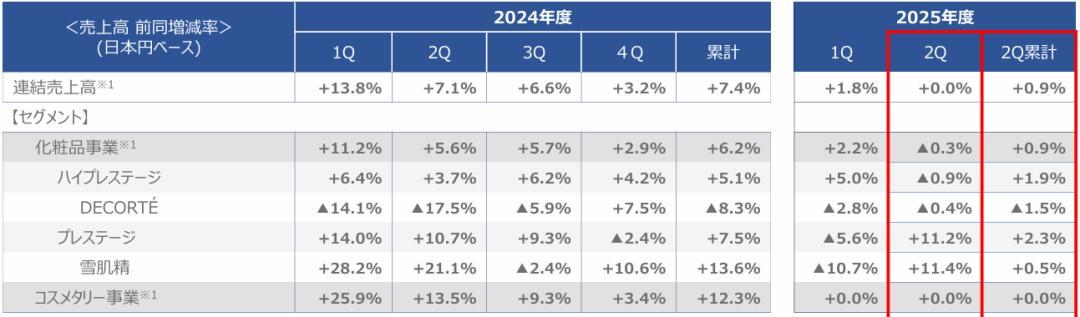 前文提及,花王为前述5大集团中唯一营利双增企业,整体业绩上,2025上半年销售额(受汇率影响)下滑1.0%,实际增长3.7%,花王表示,系化妆品的盈利能力大幅改善导致了增益。
