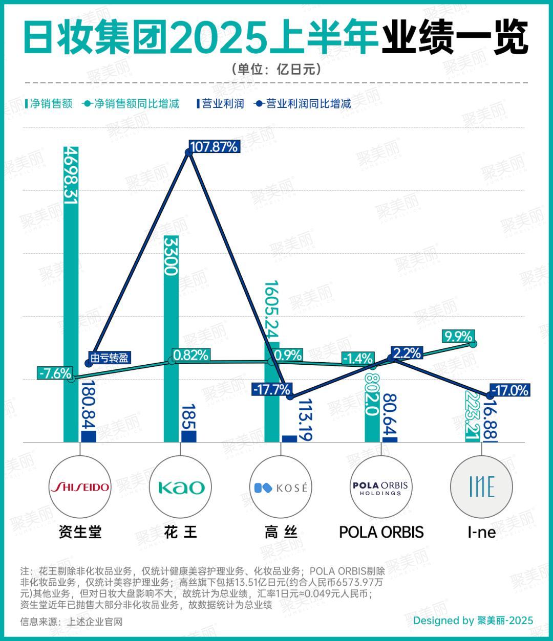 从2025上半年(美妆相关)业绩来看,资生堂营业利润由亏转盈,增利不增收,聚美丽在《知名品牌断崖式暴跌57%!》一文中已报道,在此不再赘述。