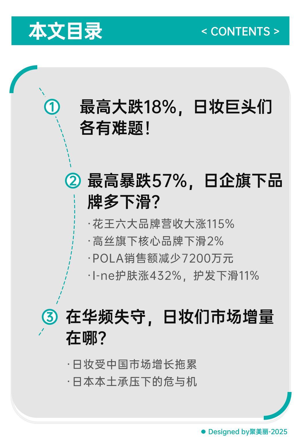 日妆巨头们近年来面临难题已是不争的事实,结合聚美丽梳理的日妆企业最新财报数据来看,还有以下关键信息值得关注: