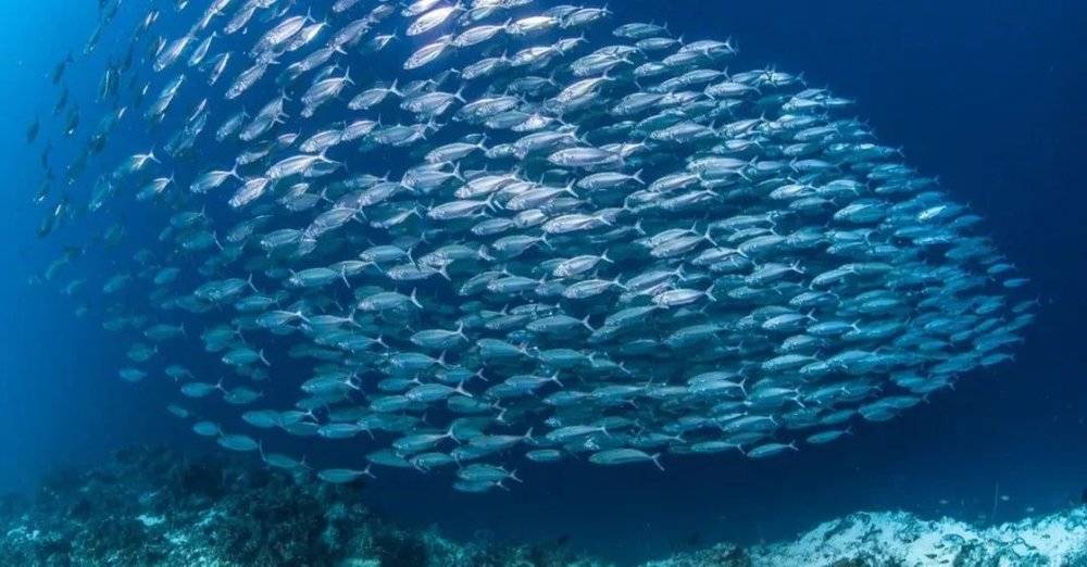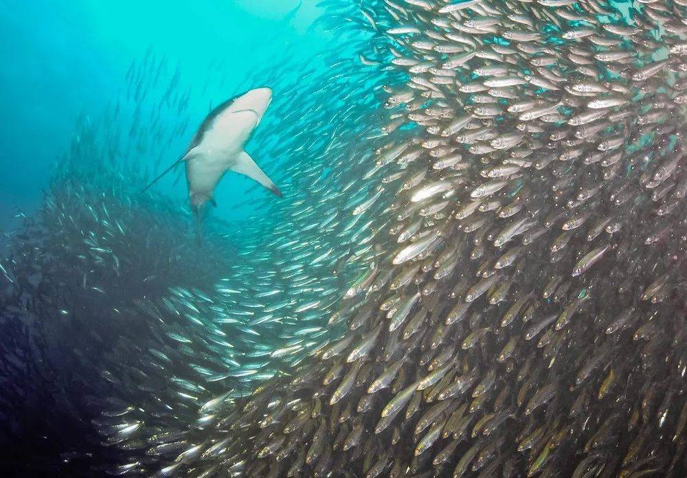 正在躲避鲨鱼捕食的沙丁鱼群(图片来源:a-z-animals.com)
