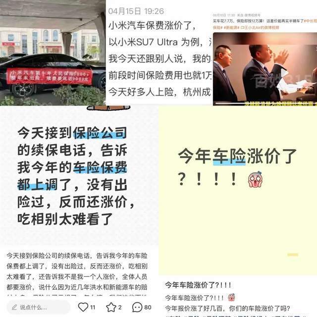除了续保价格反常,甚至还出现不同价位的新能源车最终保费可能相差无几的情况,比如前段时间被爆出,35.74 万的小米 YU7 与 94.8 万的尊界 S800 保费相差仅几百元。