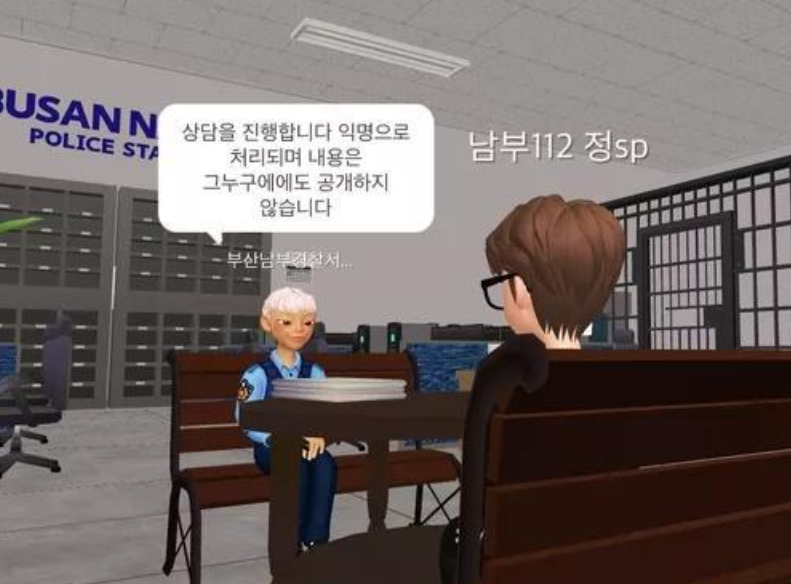 釜山南部警察署表示:市民可以在元宇宙平台中来到虚拟警察署,以虚拟形象寻求帮助,警员也将以虚拟形象1对1对话的方式进行咨询,咨询内容将保密。