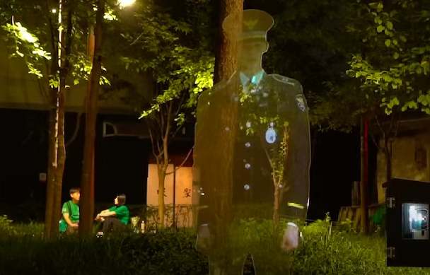 与传统稻草人不同,这个虚拟警察融合了全息投影、夜视照明与实时监控,投影屏上的警察形象来自真实警员录制,确保每个动作都符合执法者仪态。