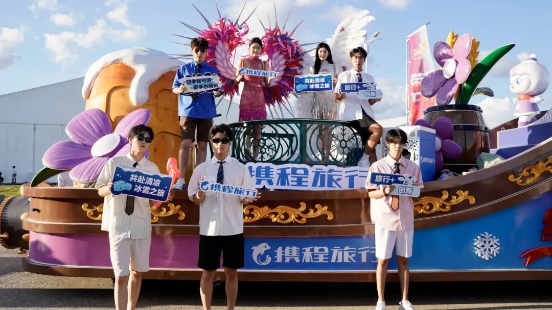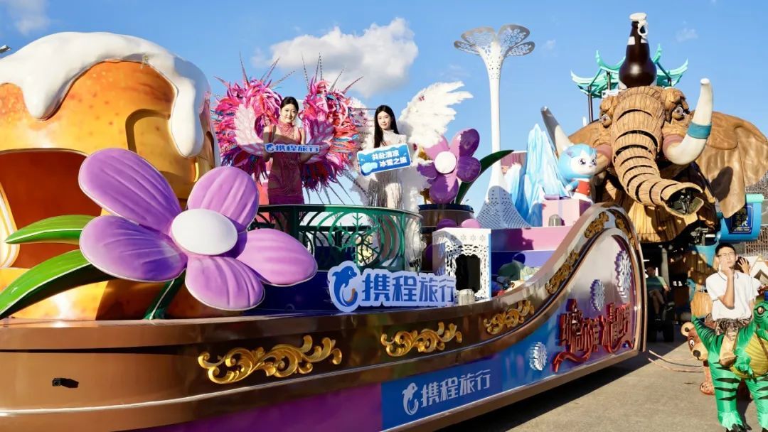 3000架无人机表演、高空烟花秀、3.5小时不间断演艺、携程主题花车惊艳巡游、室内沉浸式冰雪馆与室外“夏日雪域”创新组合等精彩活动,为游客打造了一场突破想象的文旅盛宴。