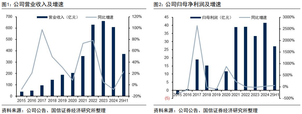 公司发布半年报:上半年实现营收371.97亿元,同比+23.78%;实现归母净利润27.11亿元,同比+62.26%。公司于25Q2实现营收193.55亿元,同比+28.28%,环比+8.48%;实现归母净利润14.59亿元,同比+27.04%,环比+16.51%。公司一体化优势持续释放,经营业绩创历史同期新高。