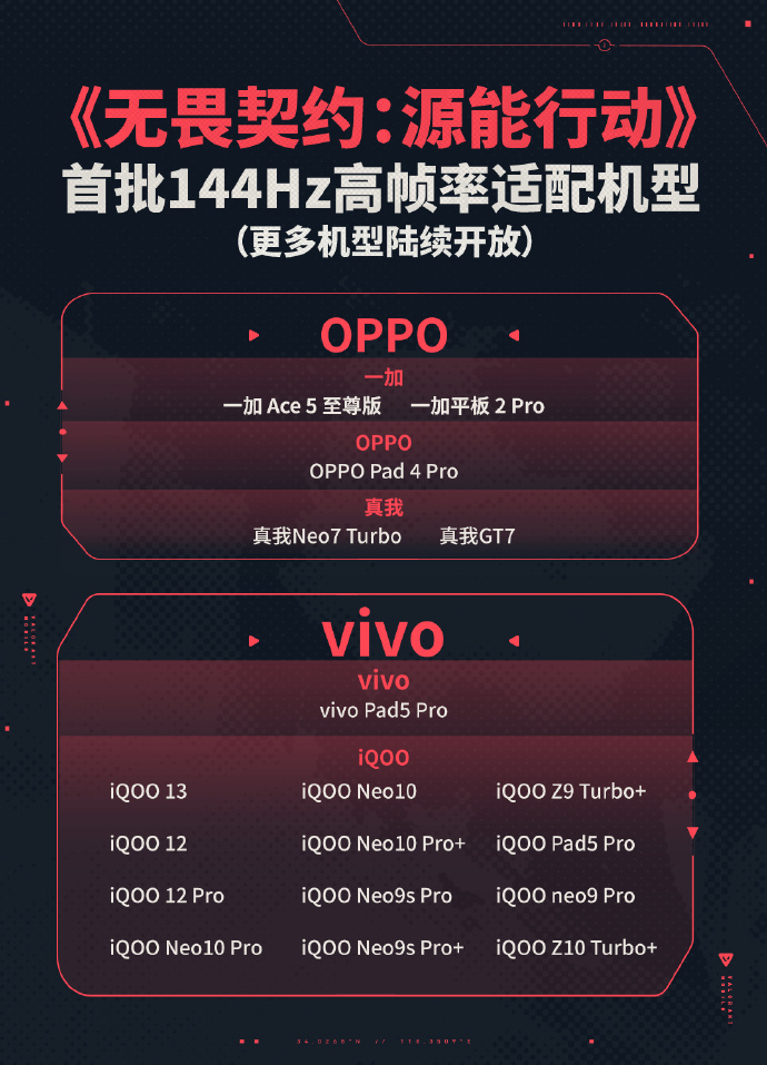 该游戏配置要求方面相对亲民。根据官方公布的数据,最低配置仅需骁龙 430、麒麟 710 或苹果 A9 处理器,安卓设备内存至少 3GB 即可运行。但若想获得最佳竞技体验,则需要更高的配置。首批支持 144Hz 高帧率的机型包括一加 Ace 5 至尊版、真我GT7、iQOO 13 等。