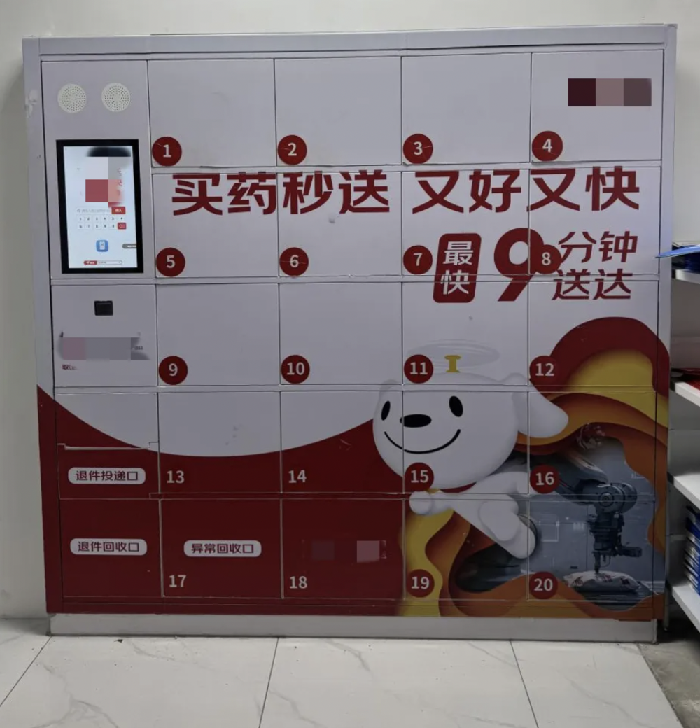 自助售(取)药机外观像一个快递柜,占地约20~30平方米,可以提供上千个药品品规,供消费者线上下单后取用。