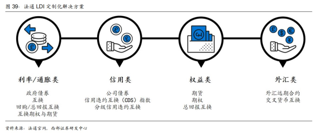 投资策略多元化,LDI(Liability-Driven Investment Strategy,即负债驱动型投资策略)是全球养老金风险管理标杆策略。法通的投资策略包括主动固定收益、指数基金、多资产、LDI、另类投资等。英国养老金体系以收益确定型计划为主,这类计划需向受益人支付固定金额,因此需严格匹配资产与负债的久期和现金流。传统债券投资难以兼顾收益与风险,LDI 策略应运而生。2001 年法通资管开发英国首个 LDI 策略,其核心逻辑是通过资产与负债的动态匹配,对冲利率和通胀风险,保障养老金的长期支付能力。