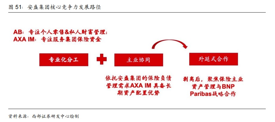 2)集团内部协同+外延式合作。法通集团业务机构高度协同,以资管为核心,构建“资金-资产-价值”业务发展闭环;安联、安盛等国际保险集团则依托母公司资源,为子公司提供覆盖全球的分销渠道支持与稳定的资本补充,助力其在细分市场深耕拓展。集团内部加强协同之外,在全球资管行业向头部集中的趋势下,外延式合作成为必选项,法通与黑石合作建立信贷合作伙伴关系,重点布局美国市场;安盛集团选择聚焦保险主业,将安盛投资管理AXA IM剥离给法国巴黎银行,并与其签署长期合作协议,通过与外部专业机构合作降低运营成本、提升投资效率成为行业趋势。