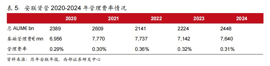 1)并购整合+专业化分工。安联通过收购PIMCO和AGI,构建起固收、权益、另类投资分工明确的一体化平台。其中,PIMCO作为全球顶尖固收机构,以宏观策略和信用研究见长;AGI深耕另类领域,在房地产、私募股权等资产上具备独特优势,二者与安联原有权益团队形成互补。同时,两大子公司带来的机构客户、主权基金等优质资源,与安联自身保险客户形成协同,快速扩大第三方资管规模。集团以持续稳定的高投资收益为核心竞争力,针对不同风险偏好客户设计差异化产品,通过“高收益率—高手续费率”模式实现外部投资需求的精准服务,进一步巩固全球资管龙头地位。