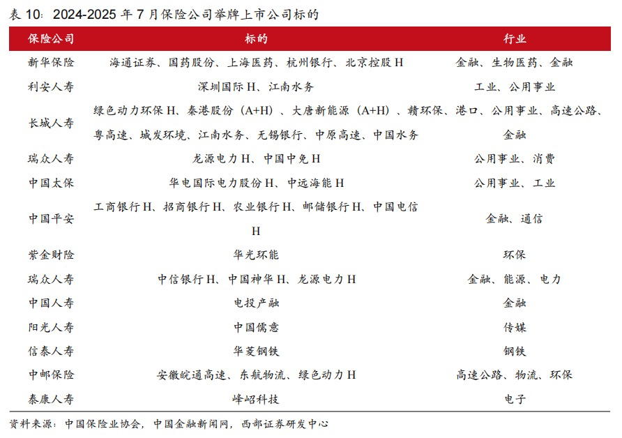 政策端,推出一系列支持保险资金入市的政策。2024年9月26日,中央金融办、中国证监会联合发布意见,明确提出要大力引导中长期资金入市。今年2月以来,金管局先后发布《保险资金投资黄金业务试点的通知》、《调整保险资金权益类资产监管比例有关事项的通知》等。7月,财政部新规要求国有险企实行“3+5 年”长周期考核,险资入市步伐有望加快。