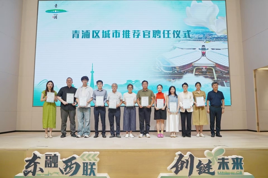 活动现场中共青浦区委常委、宣传部部长陈建国为11名青浦区城市推荐官颁发聘书。各街镇推荐官将从各自角度出发,呈现立体、多面的青浦形象——
