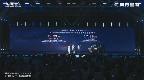 【CNMO科技消息】8月21日晚间,东风风行举办星海V9越享系列上市发布会,正式公布了这一全新MPV车型的上市价格:舒适型17.99万,豪华型19.99万。