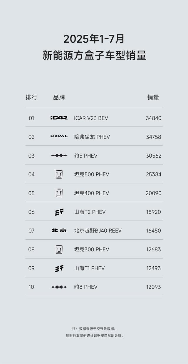 当方盒子从复古符号进化为年轻人表达自我的精神载体,这场关于自由与实力的较量早已超越账面参数的比拼。数据显示,2025年1-7月,iCAR V23以经典方盒子造型和硬核性能稳坐销量冠军宝座,而方程豹钛3凭借科技潮品定位强势收割关注。对于预算在15万元左右的年轻消费者来说,是选择让iCAR V23陪你翻山越海,还是让钛3带你穿梭星际?本期话题,我们就来聊一聊。