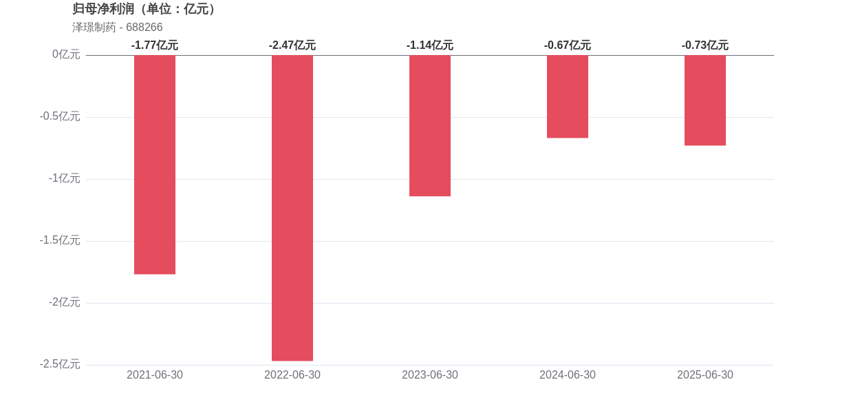 在2025年上半年,泽璟制药的经营业绩呈现营收增长但亏损持续的态势,实现营业收入3.76亿元,同比增长56.07%,但归母净利润为-0.73亿元,同比下滑9.42%。引人关注的是公司已连续7年中报出现亏损,显示出盈利能力仍待提升。