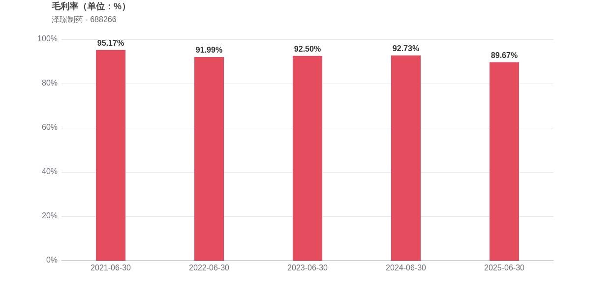 从反映盈利质量的指标来看,泽璟制药的净利率由2024年上半年的-32.21%提升至-20.12%,提升了12.09个百分点,但毛利率从92.73%下滑至89.67%,净资产收益率为-5.98,同比下降了1.82个百分点。